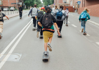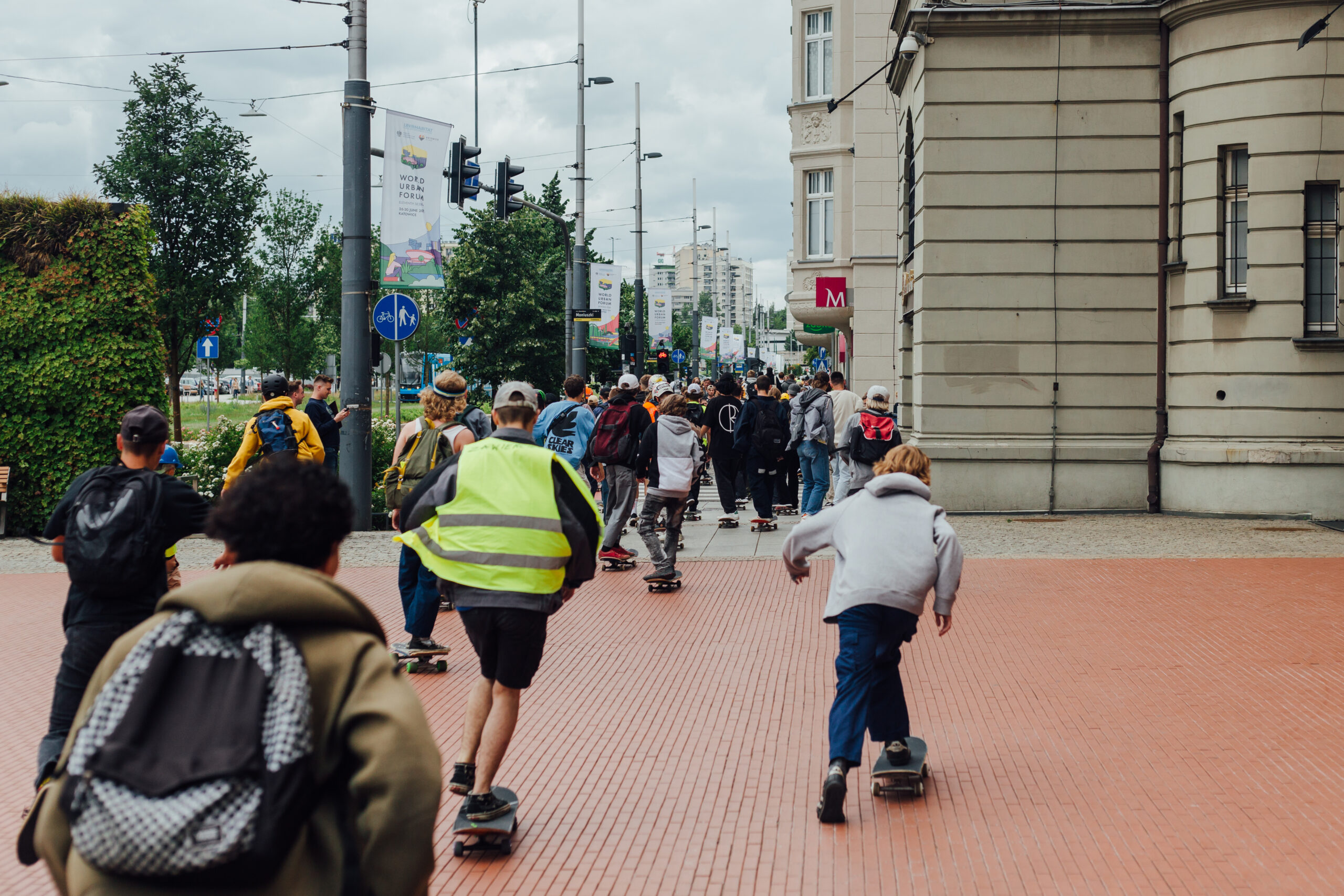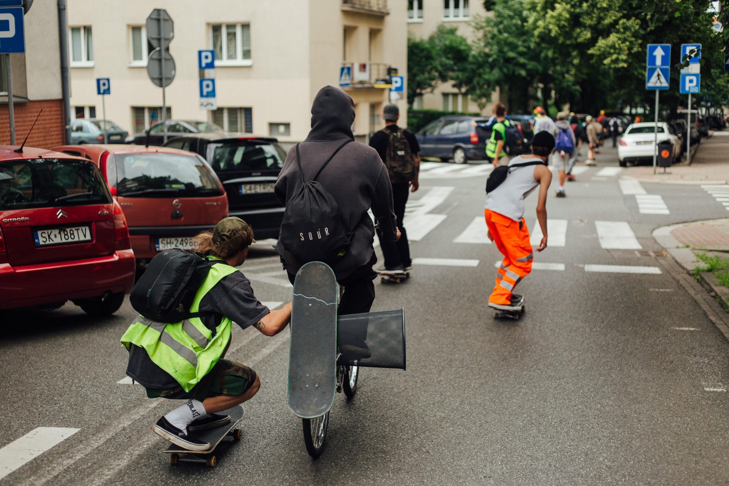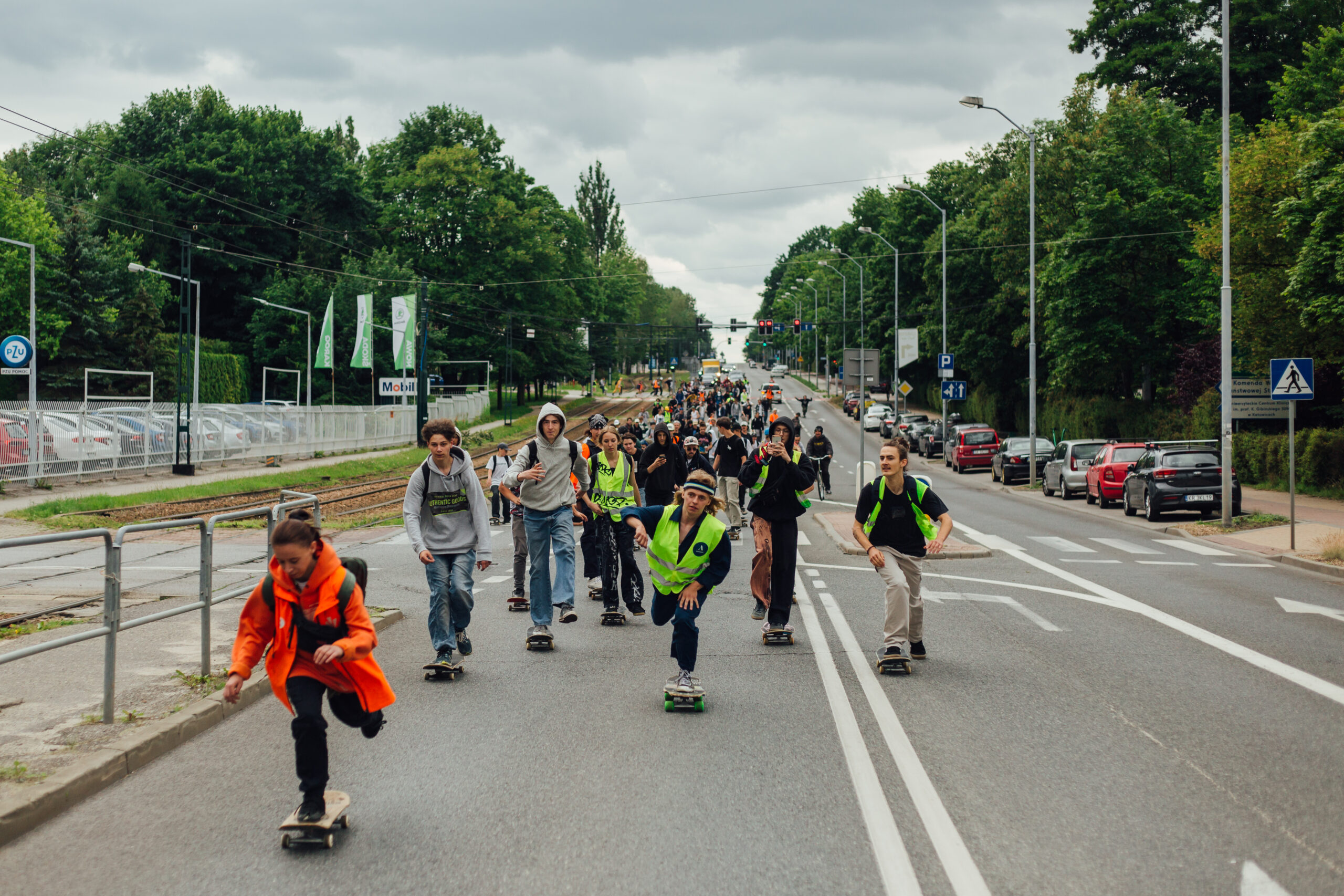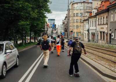 No i dobra, w sumie chyba to co najlepsze w desce to sama jazda a pełna pizda ulicami Katowic w dzień deski to coś co każdy skejcik powinien przeżyć i kultywować rok w rok! W sumie beka bo w niektórych miastach skejty jadą z eskortą niebieskich i nie są to kibice ruchu chorzów. . .